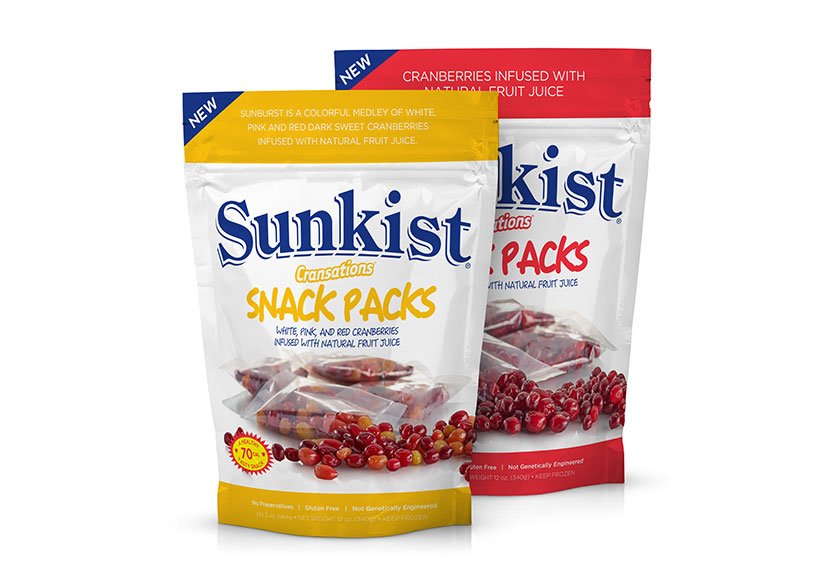 Sunkist Snacks have now followed the successes of Sunkist® Trail Mix™ including the introduction of Sunkist Cranston® Snack Packs, that are ready to go in a lunchbox or backpack and are never fried, never baked and made from just real fruit. Sunkist Cransation® Snack Pack have been a welcome solution for snackers seeking delicious, nutritious snacks with no added sugar, colors or flavors. We designed the clean packaging for these snack packs.